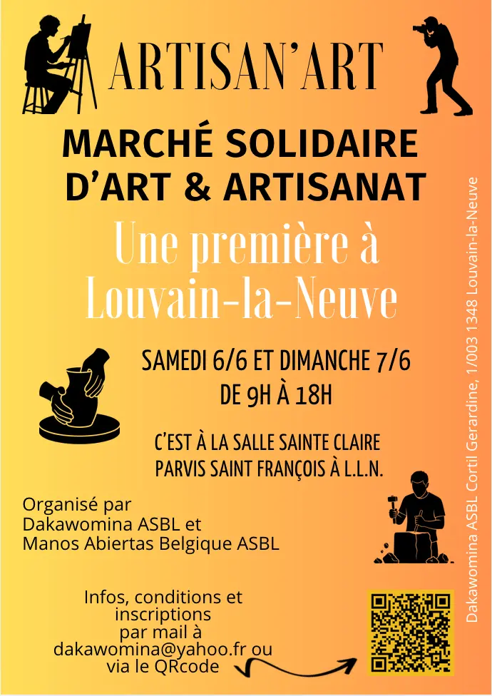 L'événement Artisan'Art est organisé PAR ET AU PROFIT des associations DAKAWOMINA ASBL et MANOS ABIERTAS BELGIQUE ASBL.