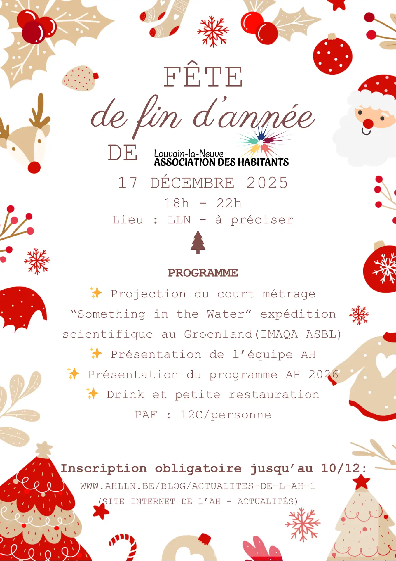 L'AH a le plaisir de vous inviter à sa fête de fin d'année dont voici les informations